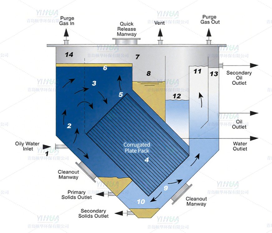 1.  Efficient oil-water separation:The corrugated plate aggregation technology can quickly separate oil droplets with a particle size of >20μm, and the oil-water separation efficiency is as high as more than 90%, which is significantly better than the traditional oil separator.